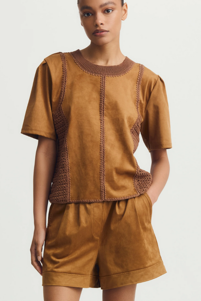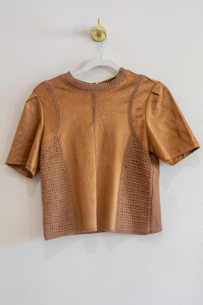 Short Sleeve Suede Top