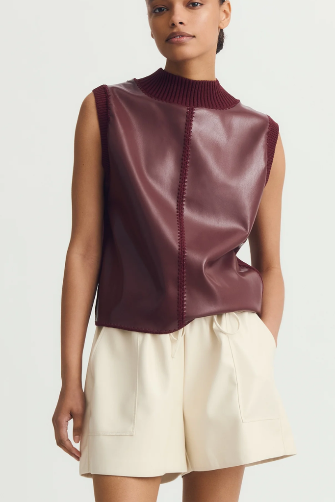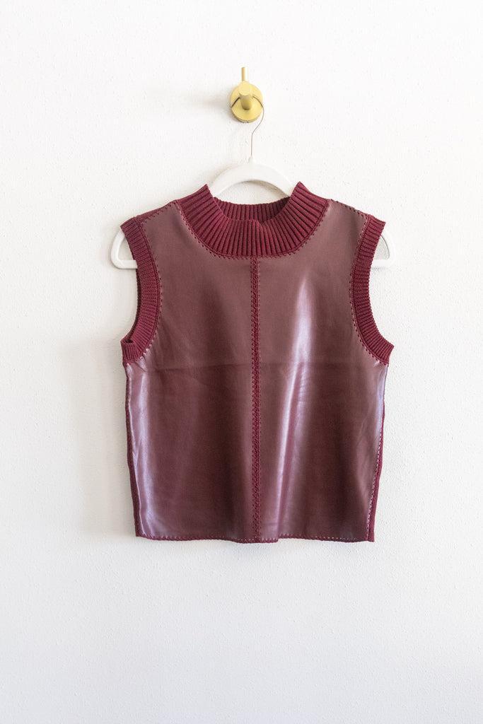 Sleeveless Mock Neck Suede Top